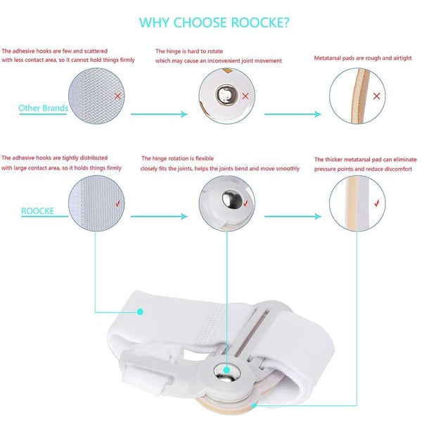 Der Korrektor unterstützt außerdem die richtige Ausrichtung der Großzehe nach einer Hallux-valgus-Operation. Er wird für Männer und Frauen empfohlen, für den Tag- und Nachtgebrauch, drinnen wie draußen – zur Behandlung von Hallux valgus, Ballenzehen, überlappenden und schiefen Zehen.