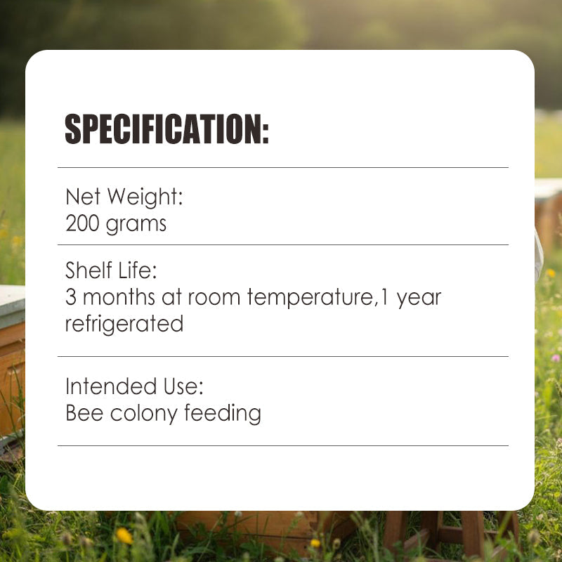 Nur zur Bienenfütterung, nicht für den menschlichen Verzehr geeignet. Nach dem Öffnen sofort verwenden, um maximale Frische zu gewährleisten.
